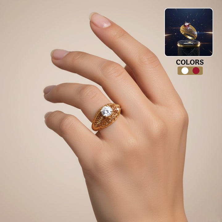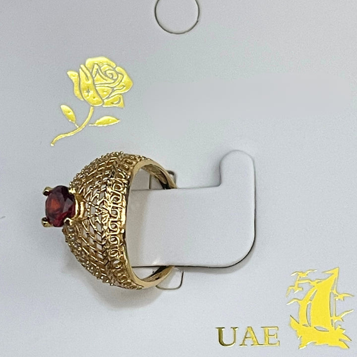 خاتم فاخر مطلي بالذهب مع حجر كريم أحمر
