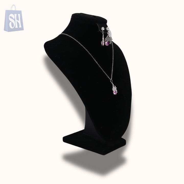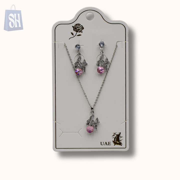 طقم مجوهرات كريستال بلوم بينك - قلادة وأقراط