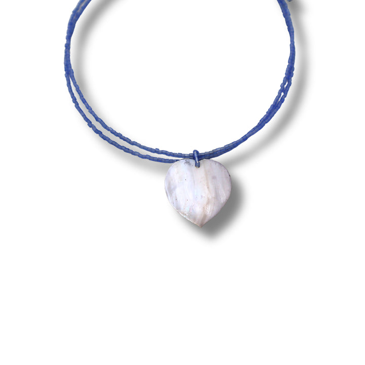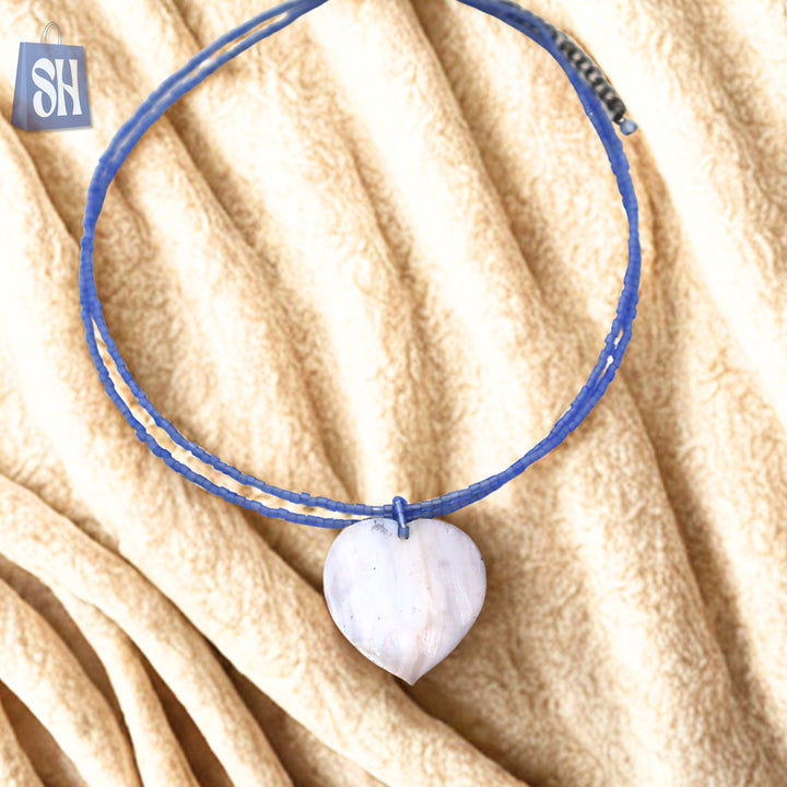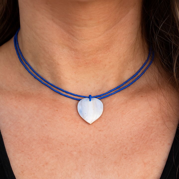 استمتعي بسحر الساحل مع هذه القلادة المصنوعة يدويًا، والمزينة بقلادة صدفة بحر رقيقة على شكل قلب. القلادة معلقة بخيط مزدوج من الخرز الأزرق، مما يضفي عليها لمسة جمالية نابضة بالحياة مستوحاة من البحر. مثالية للارتداء اليومي أو الخروجات الصيفية، تضفي هذه القطعة لمسة من الأناقة الطبيعية على أي إطلالة.