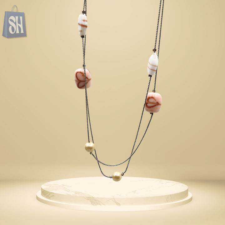 قلادة مزدوجة الخيوط من الأحجار الكريمة الوردية.