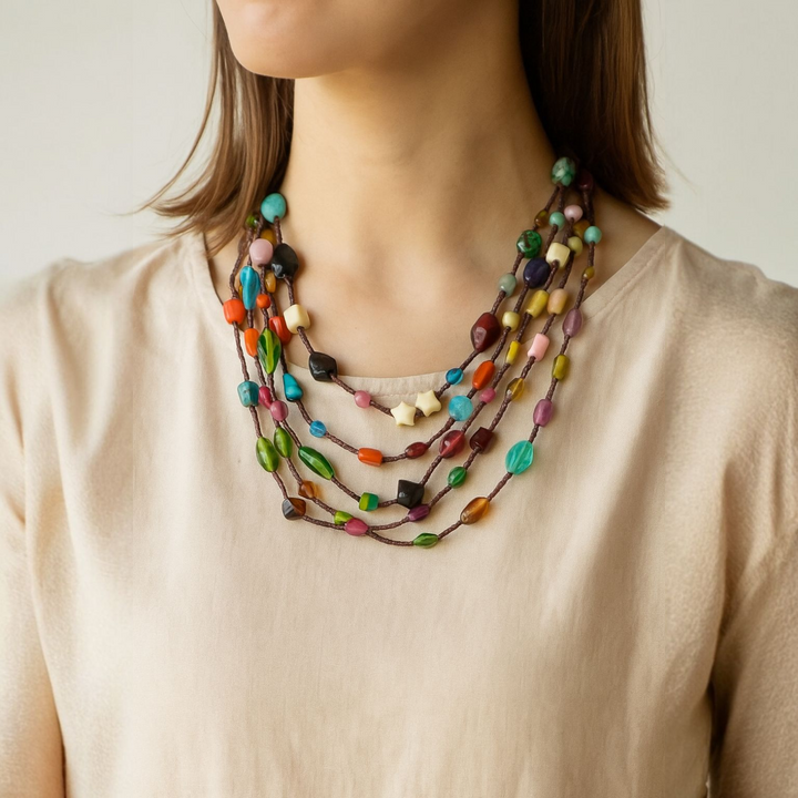 قلادة من الخرز متعدد الألوان جريئة وجميلة - احتفال بالألوان