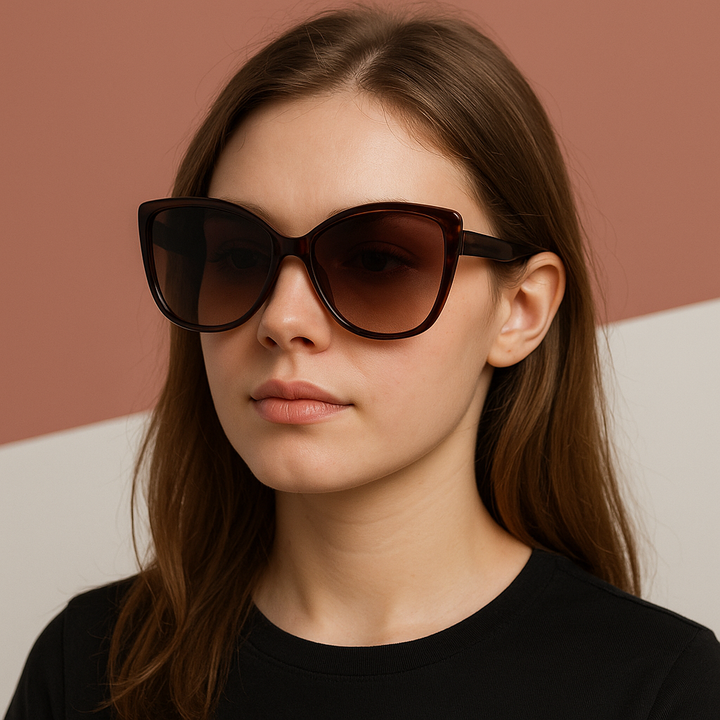 اخطفي الأنظار بأناقة خالدة مع هذه النظارات الشمسية الكبيرة بإطار فراشة. مصممة لتناسب جميع أشكال الوجوه، وعدساتها البنية الداكنة المتدرجة توفر الأناقة والحماية من الشمس.