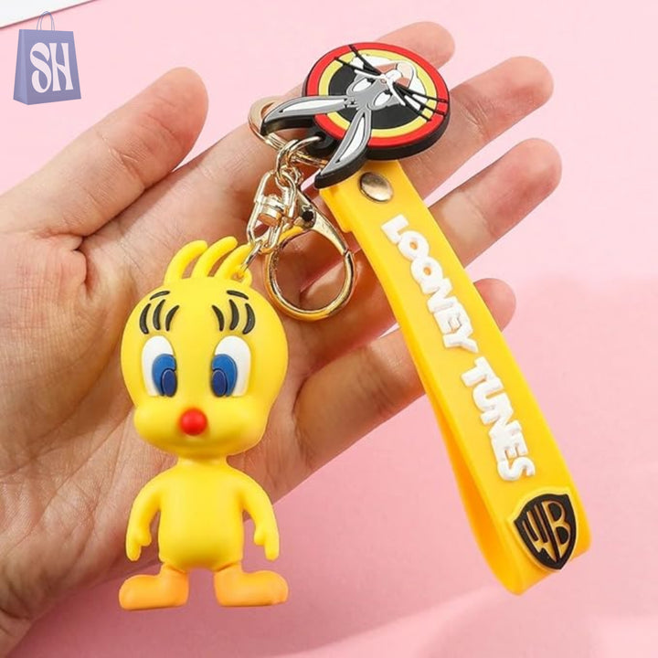 أضفِ البهجة إلى مفاتيحك مع سلسلة مفاتيح لوني تونز هذه! متوفرة باللون الأسود والأزرق والبني والأصفر، وكل منها تحمل شخصيات محبوبة مثل باغز باني ودافي داك. متينة ومثالية لعشاق الرسوم المتحركة.