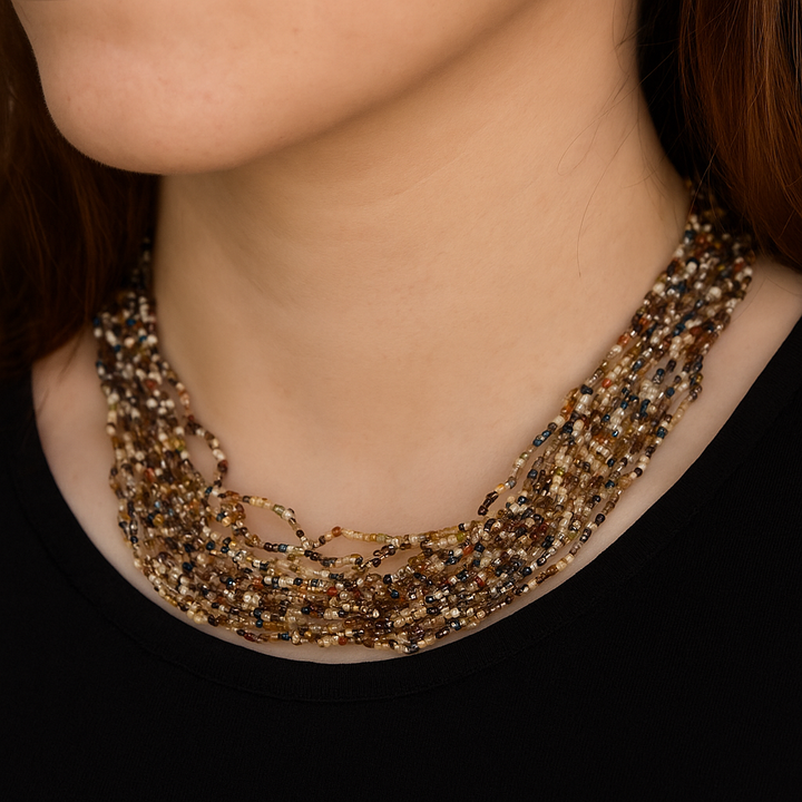 يجمع عقد "همسات برونزية" بين الأناقة الخالدة والحرفية الماهرة. يضفي لونه البرونزي الدافئ لمعانًا رقيقًا ومميزًا، مما يجعله إكسسوارًا متعدد الاستخدامات للمناسبات الرسمية وغير الرسمية. صُمم هذا العقد ليمنحكِ المتانة والأناقة، ويضفي على إطلالتكِ سحرًا راقيًا وبسيطًا. مثالي لمن يُقدّرون الجودة والتصميم الكلاسيكي في مجموعة مجوهراتهم.