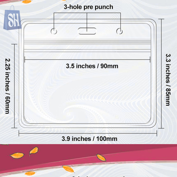 حامل شارات هوية شفاف مقاوم للماء - ثقب ثلاثي، أفقي