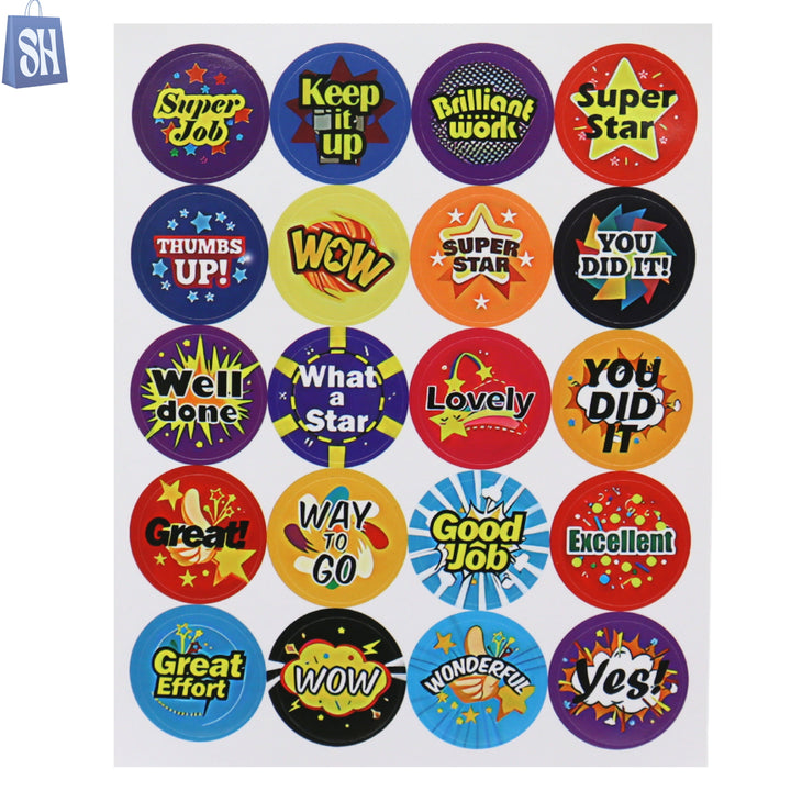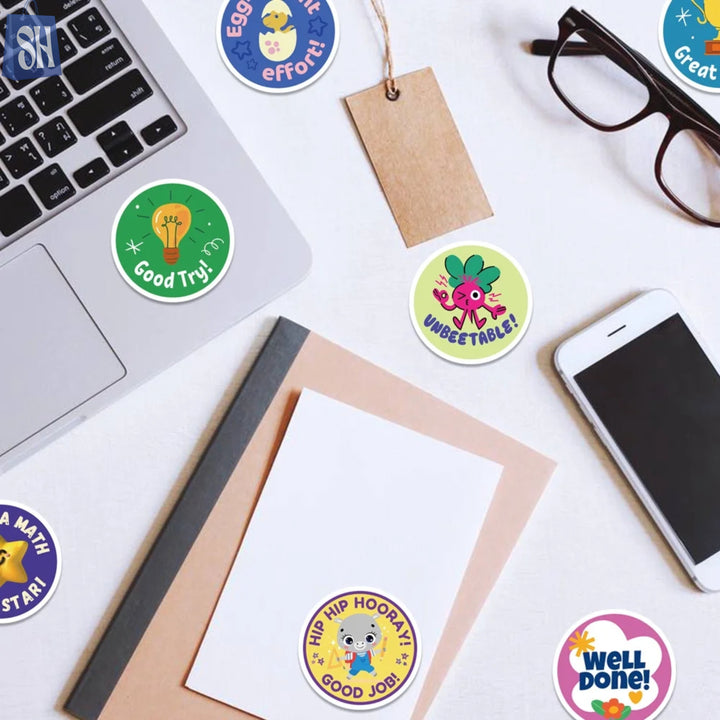 تصاميم رائعة برسائل إيجابية مثل "أحسنت"، "ممتاز"، و"نعم!" تضيف لمسة من الفرح والتحفيز على أي إنجاز.
