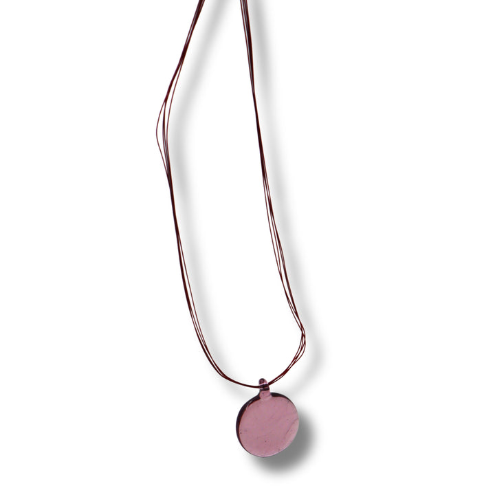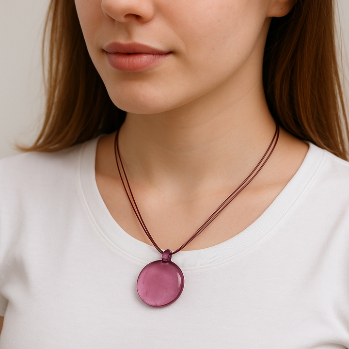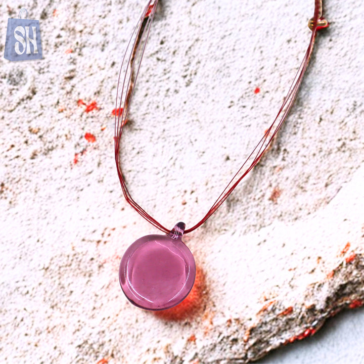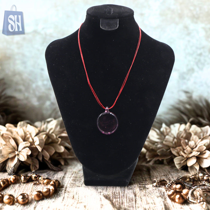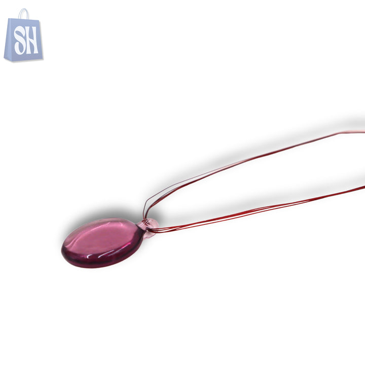 قلادة "كريمسون أورا" البسيطة واللافتة، تجمع بين البساطة العصرية والطابع الجريء. تتميز هذه القطعة بقلادة زجاجية شفافة بلون بنفسجي غامق معلقة على خيوط حمراء زاهية، لتضفي لمسة لونية فريدة على أي إطلالة. خفيفة الوزن وأنيقة بكل سهولة، إنها الإكسسوار اليومي المثالي لمن يعشقن التميز بأناقة رقيقة.