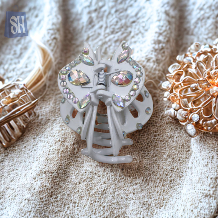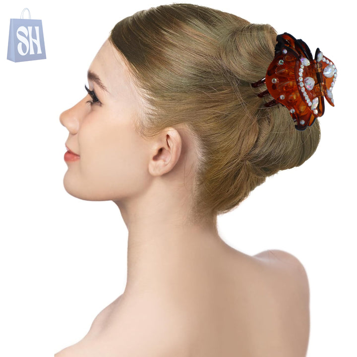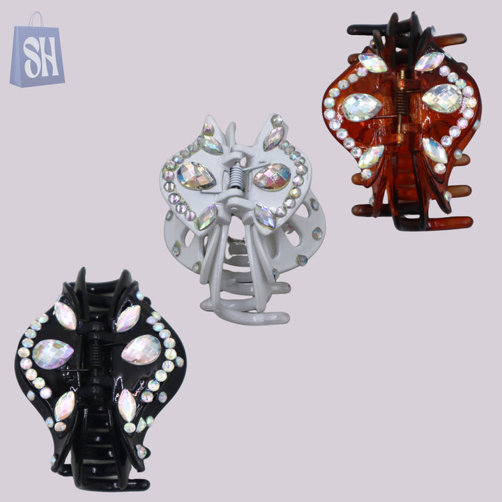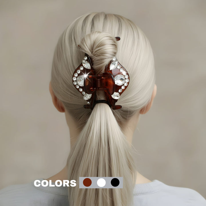 Add a touch of sparkle to your hairstyle with this elegant set of butterfly hair claw clips. Designed with dazzling crystal rhinestones, these clips combine beauty and functionality, keeping your hair secure while enhancing your look. Perfect for casual days, parties, or special occasions, they are lightweight, durable, and suitable for all hair types. Available in classic black, chic white, and timeless tortoiseshell to match any outfit.