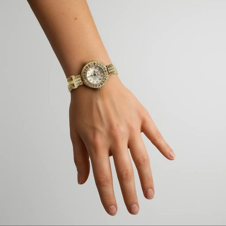 تألقي بالأناقة والرقي مع هذه الساعة النسائية الذهبية المذهلة، المصممة لتعزيز مظهرك في أي مناسبة.