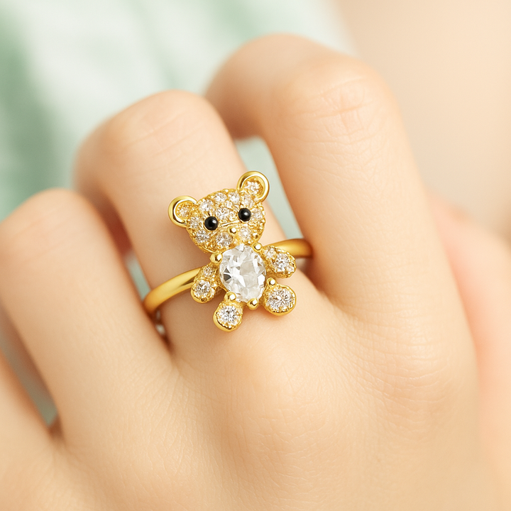 يجمع خاتم الدب اللطيف هذا بين التصميم المرح والحرفية المتقنة، مما يجعله إكسسوارًا رائعًا لأي مناسبة. يضفي تصميمه المتقن لمسةً من الرقي مع الحفاظ على جمالية راقية. مثالي لمن يقدرون المجوهرات الفريدة عالية الجودة التي تبرز ببراعة.
