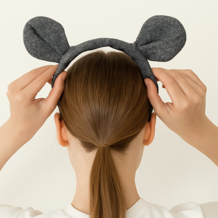 أضيفي لمسة من المرح والبراءة إلى إطلالتك مع هذا الطوق القماشي الناعم المصمم بأذنين كرتونية رائعة.