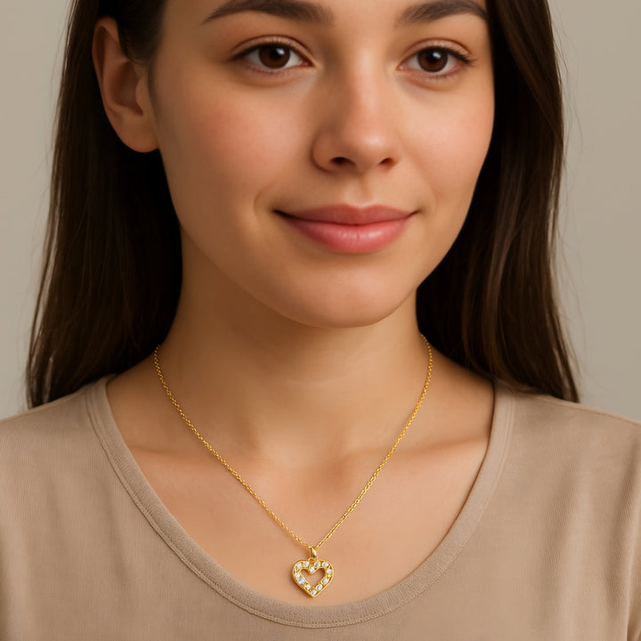 تجمع هذه القلادة المذهلة على شكل قلب بين التصميم الخالد مع لمسة من التألق - مثالية لتقديمها كهدية أو تدليل نفسك.