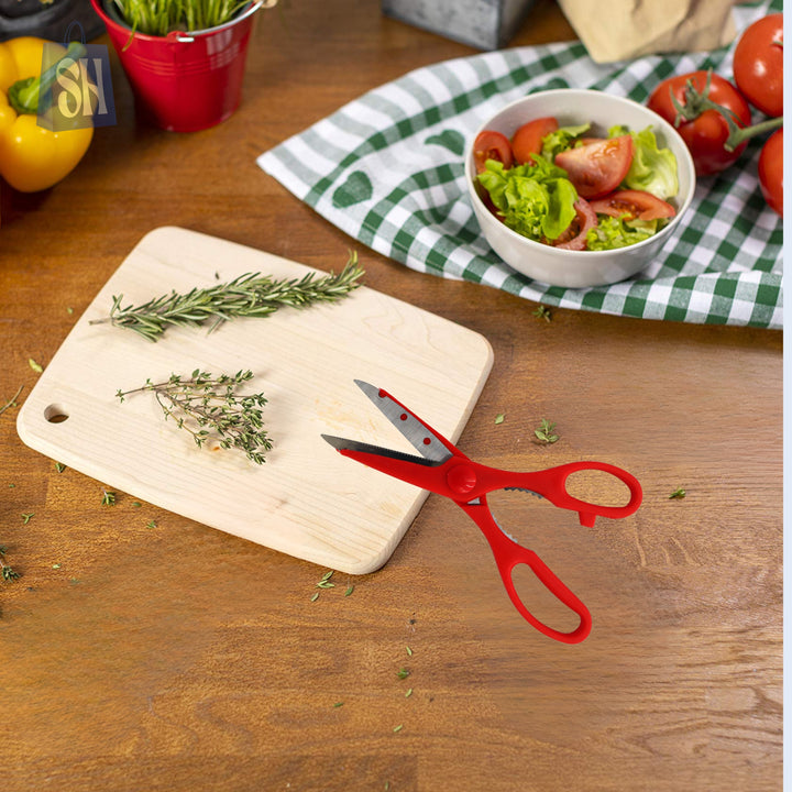 مقص EKCO متعدد الاستخدامات، مقاس 21 سم، ضروري لأي مطبخ. مصنوع من الفولاذ المقاوم للصدأ المتين، وتصميمه متعدد الاستخدامات يسمح بالتقطيع والتقشير وحتى فتح الزجاجات. مثالي للدواجن والخضراوات والورق وغيرها. سهل الاستخدام والتنظيف، بلونه الأحمر الزاهي، يُعد هذا المقص قطعة أساسية لعشاق الطبخ.