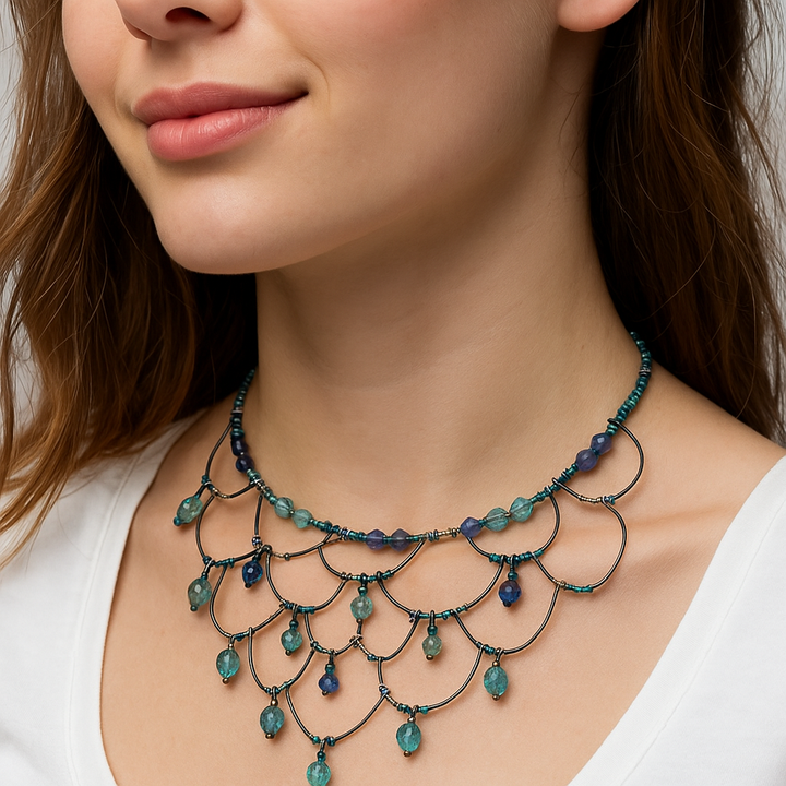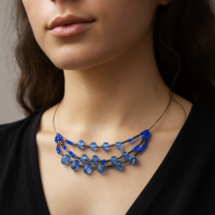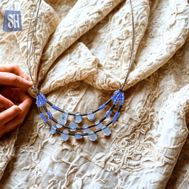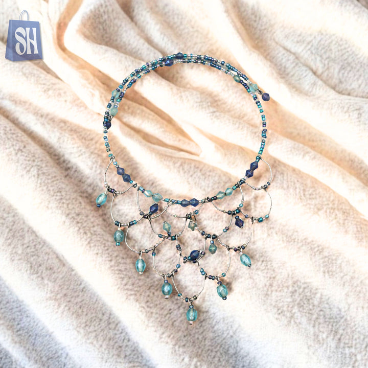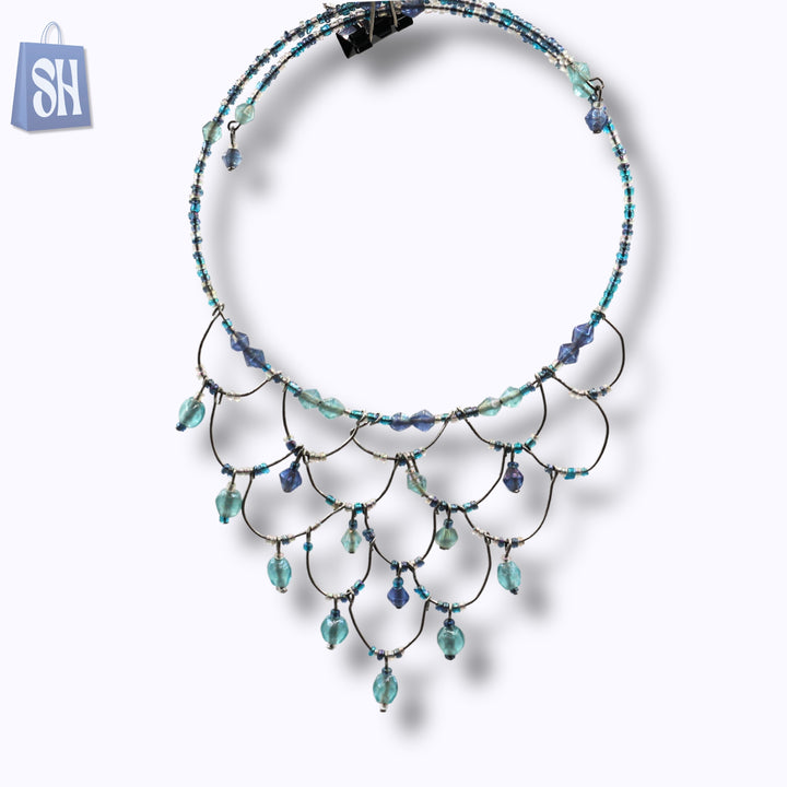 قلادة أنيقة من الخرز الأزرق على شكل دمعة.