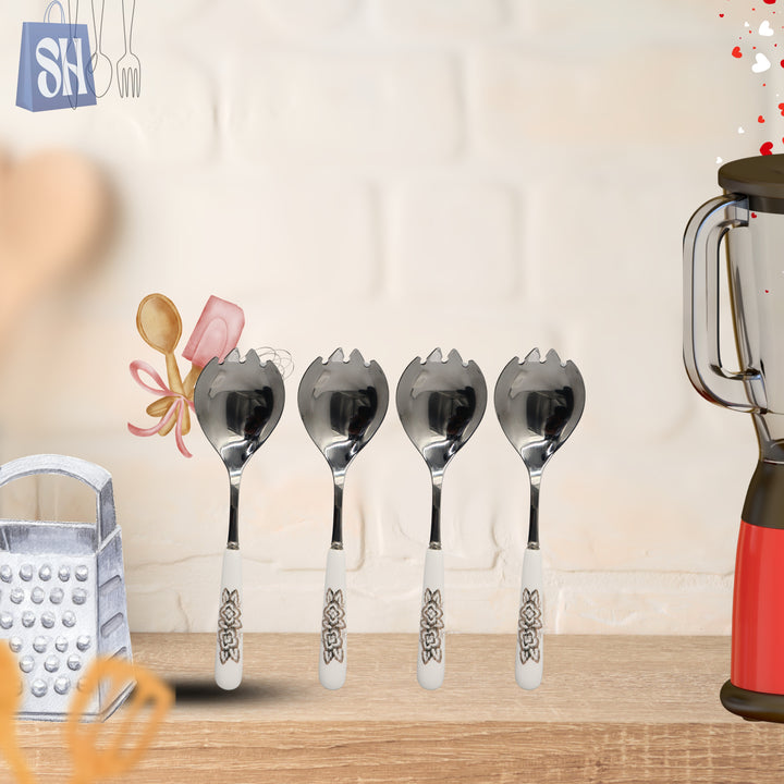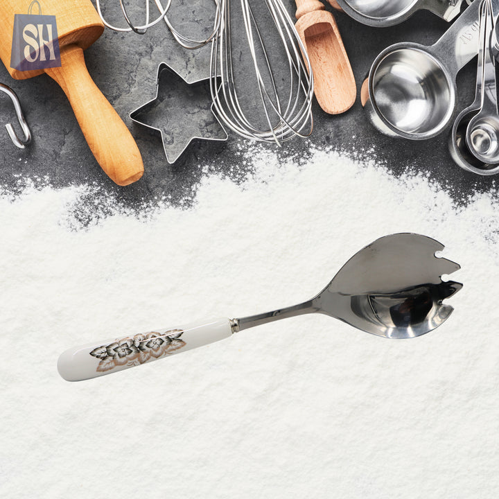 ملعقة تقديم بتصميم أنيق ومقبض مزخرف بالزهور