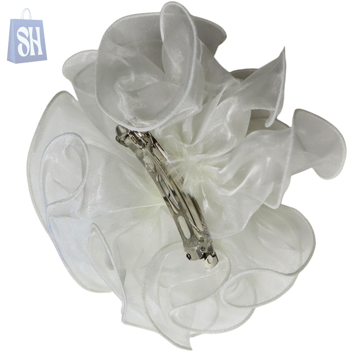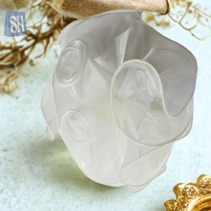 Elevate your hairstyle with this luxurious sheer floral scrunchie, designed with delicate fabric petals that create a soft, voluminous look. Its lightweight, airy texture adds a romantic charm, making it perfect for special occasions, parties, or adding elegance to your everyday style. Gentle on hair yet secure, this scrunchie blends beauty with comfort for a flawless finishing touch.