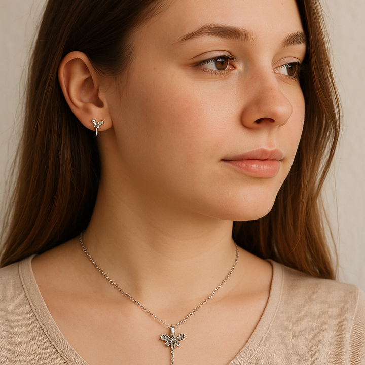 🦋 مجموعة مجوهرات الفراشة الفضية الأنيقة - أناقة في كل التفاصيل