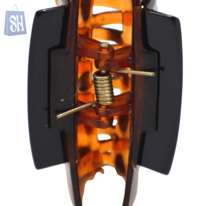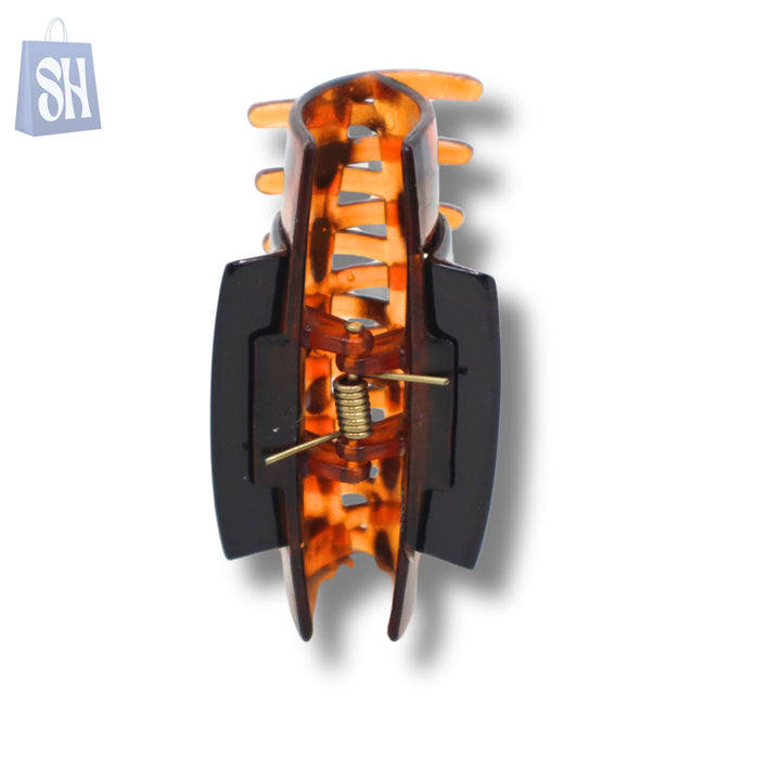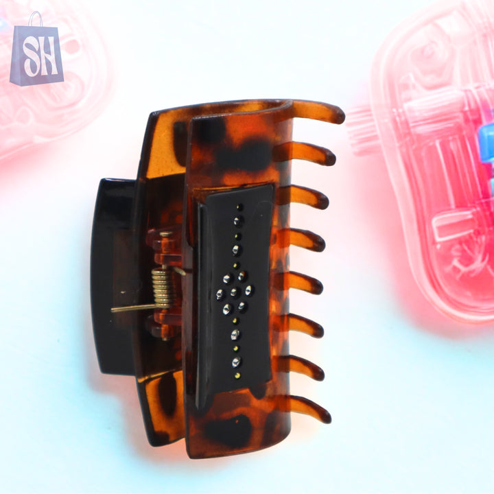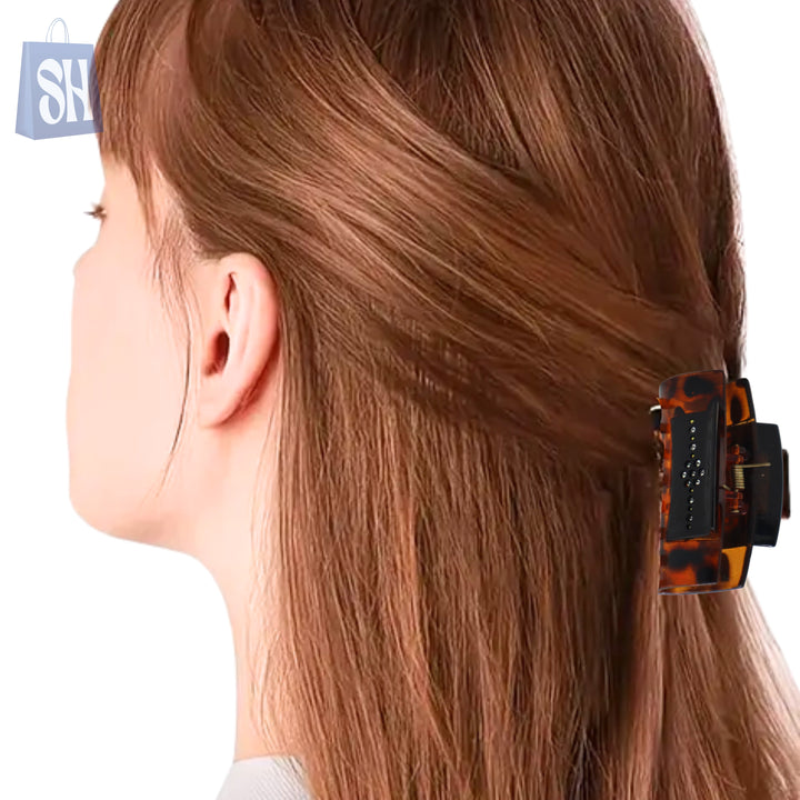 Add a touch of timeless elegance to your hairstyle with this tortoiseshell hair claw clip. Designed with a sturdy spring mechanism, it ensures a secure hold for all-day comfort. The sleek black accent adorned with sparkling rhinestones gives it a stylish and refined look, making it perfect for both everyday wear and special occasions. Lightweight yet durable, this claw clip is your go-to accessory for effortless chic.