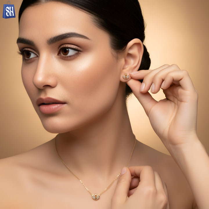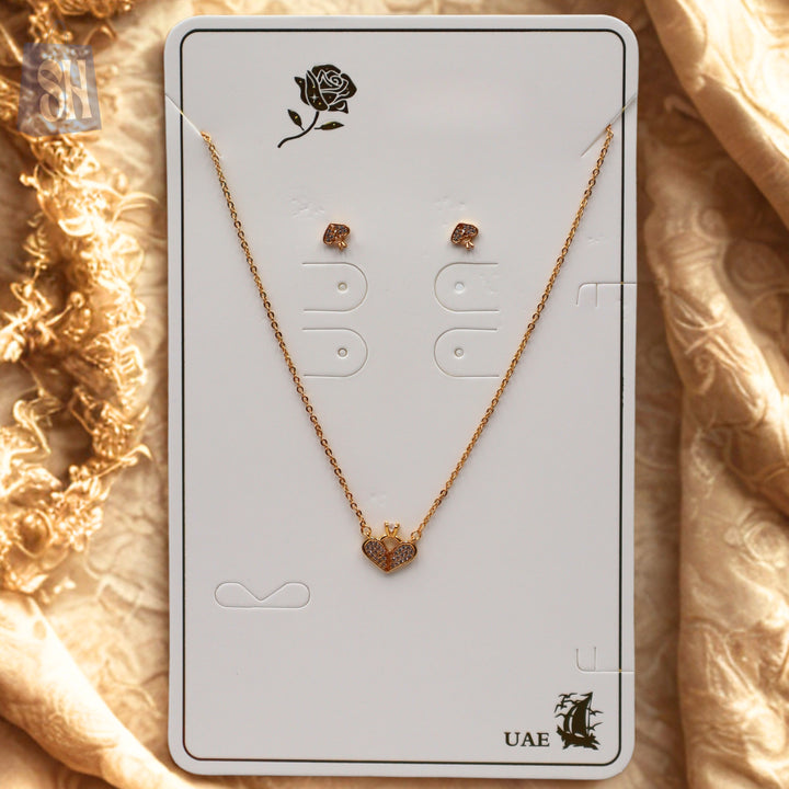 طقم قلادة وأقراط على شكل قلب تاج ذهبي - تصميم إماراتي