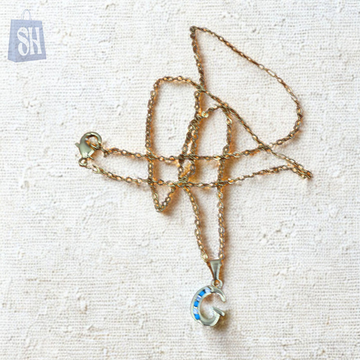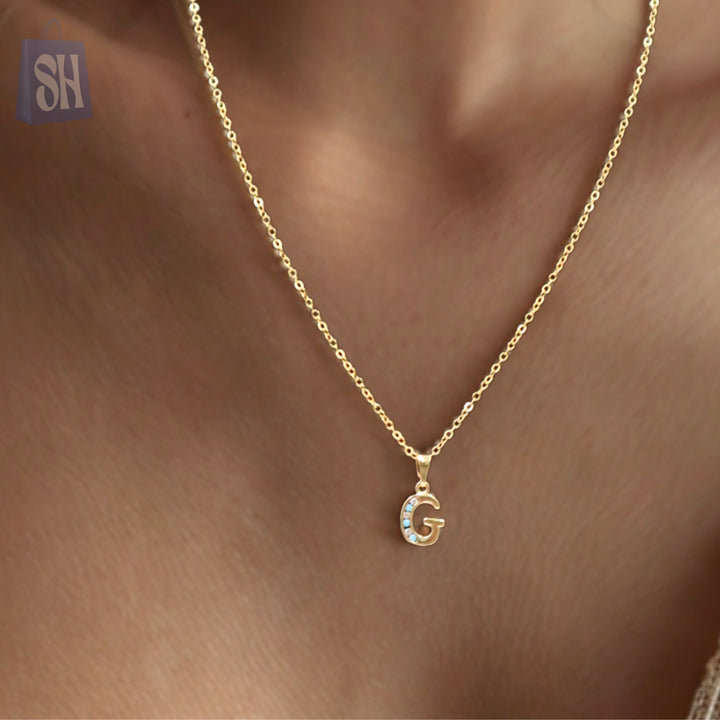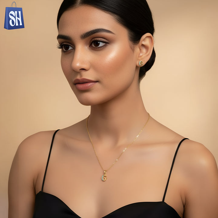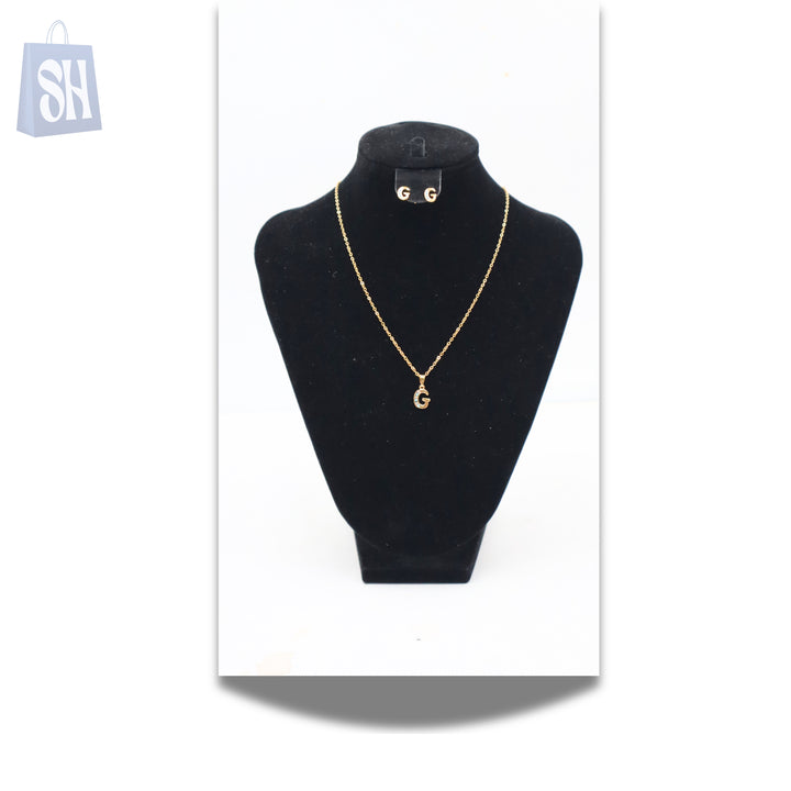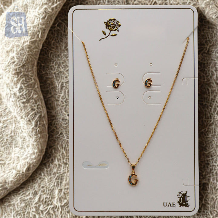 قلادة وأقراط: تصميم الحرف الأول من الاسم "G" مع تفاصيل حجرية