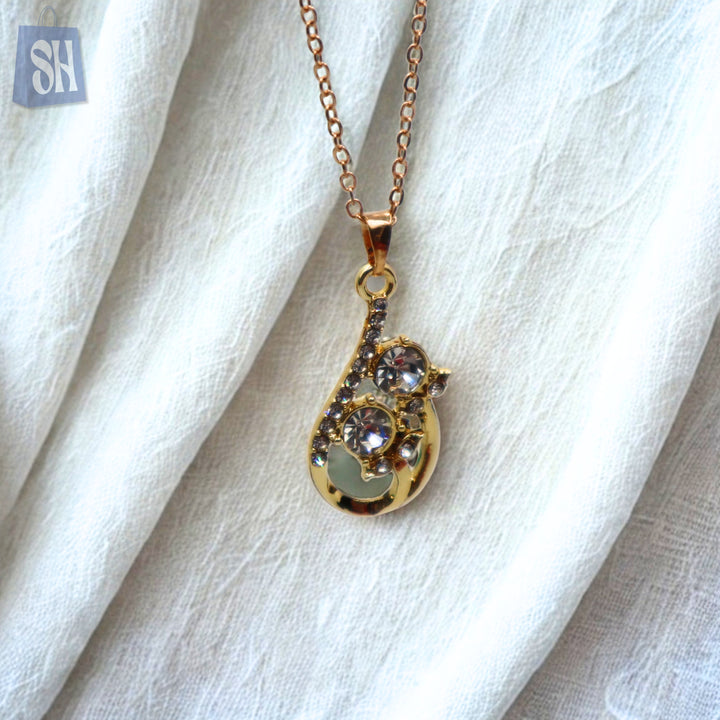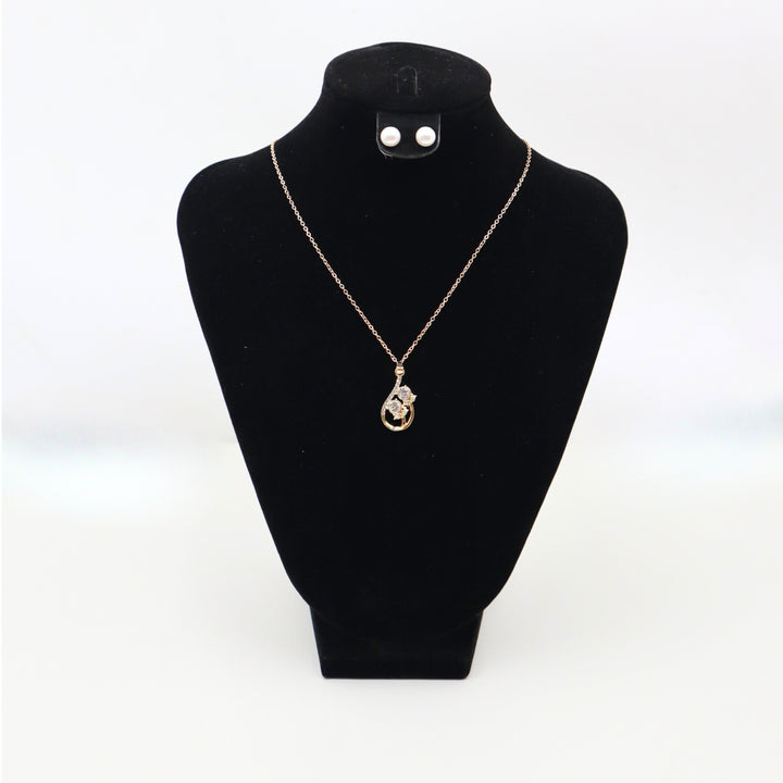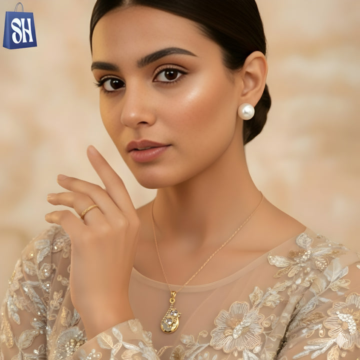 قلادة ذهبية اللون مزينة بقلادة زهرية على شكل دمعة، مزينة بشكل جميل بأحجار الراين الشفافة وتفاصيل معقدة