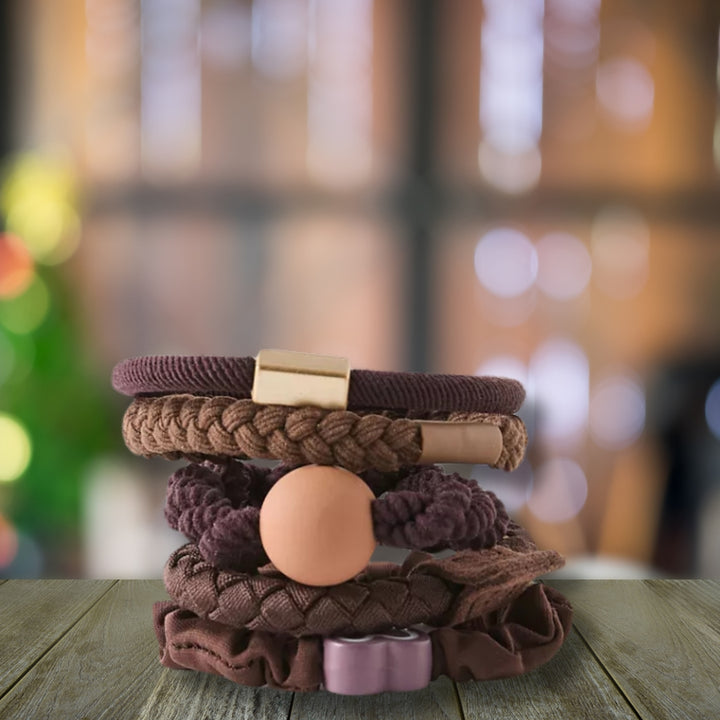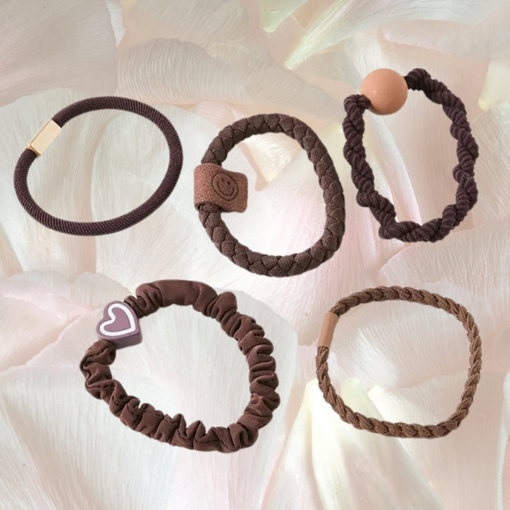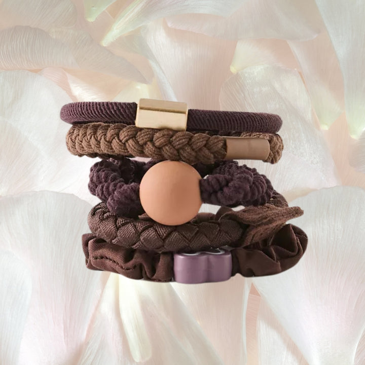 🤎 أناقة أرضية - مجموعة ربطات شعر من 5 قطع