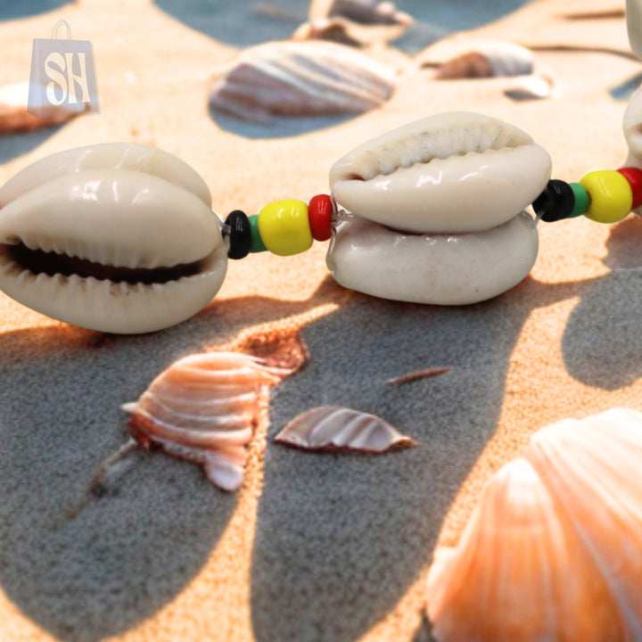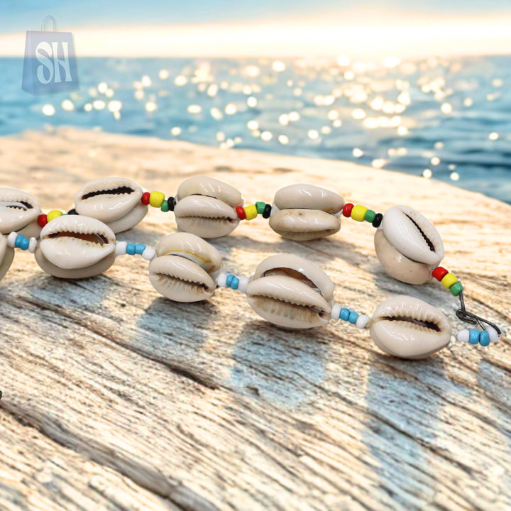 استمتعي بسحر الساحل مع قلادة صدف الكاوري المصنوعة يدويًا، والمزينة بخرز ملون أحمر، أصفر، أخضر، وأزرق، لإطلالة نابضة بالحياة. صدف الكاوري الطبيعية مرتبة بشكل متناسق، مما يضفي لمسة جمالية مستوحاة من...