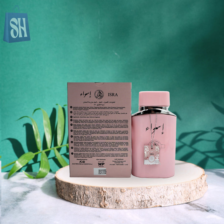 انغمسي في عالم من الأناقة والرقي مع إسرا ، عطرٌ راقٍ صُمم خصيصاً للمرأة الرومانسية العصرية. يأتي إسرا في زجاجة وردية ناعمة بلمسات فضية أنيقة، ليجسد الجمال الرقيق والأنوثة الخالدة.