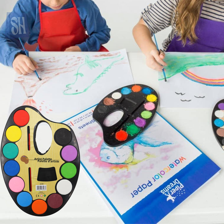 لوحة ألوان مائية للأطفال - 12 لونًا نابضًا بالحياة مع فرشاة