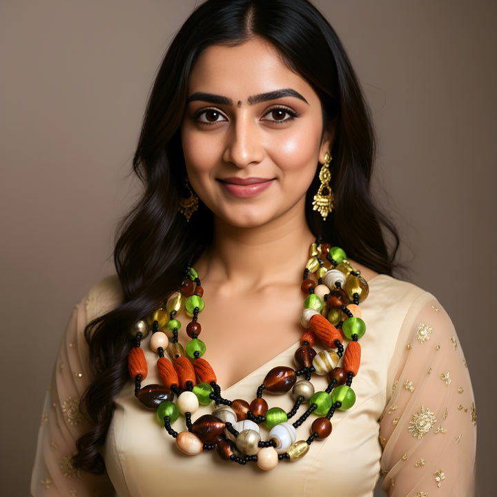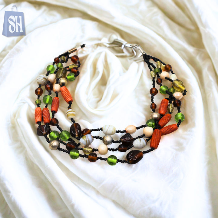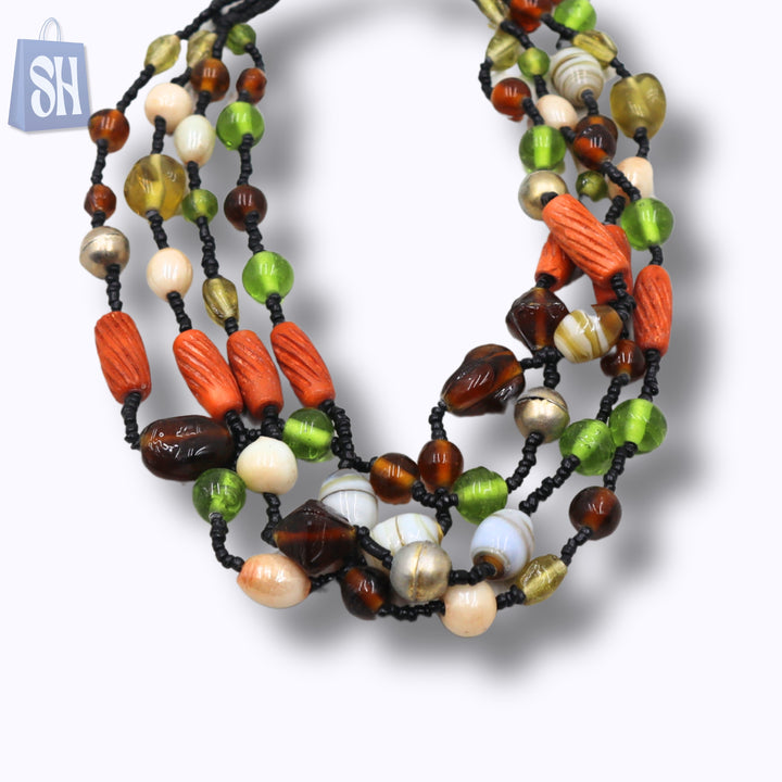 عززي مجموعة إكسسواراتكِ مع هذه القلادة المصنوعة ببراعة من الخرز متعدد الطبقات والملون. تتميز بخيوط متعددة من الخرز النابض بالحياة، مما يمنحها مظهرًا حيويًا ومزخرفًا يناسب الإطلالات الرسمية وغير الرسمية. ألوانها المختارة بعناية وتقنية الطبقات تمنحها عمقًا بصريًا، مما يجعلها قطعة مميزة متعددة الاستخدامات تُضفي على أناقتكِ لمسة من الرقي والأناقة.