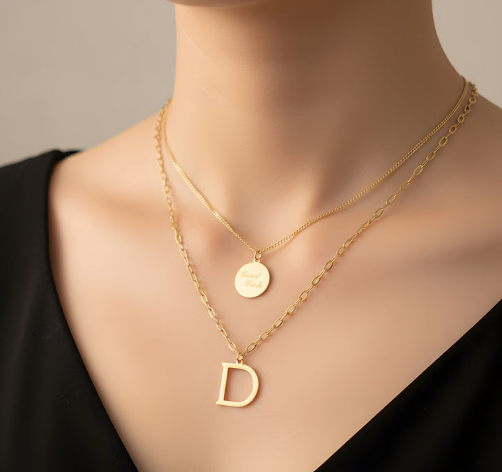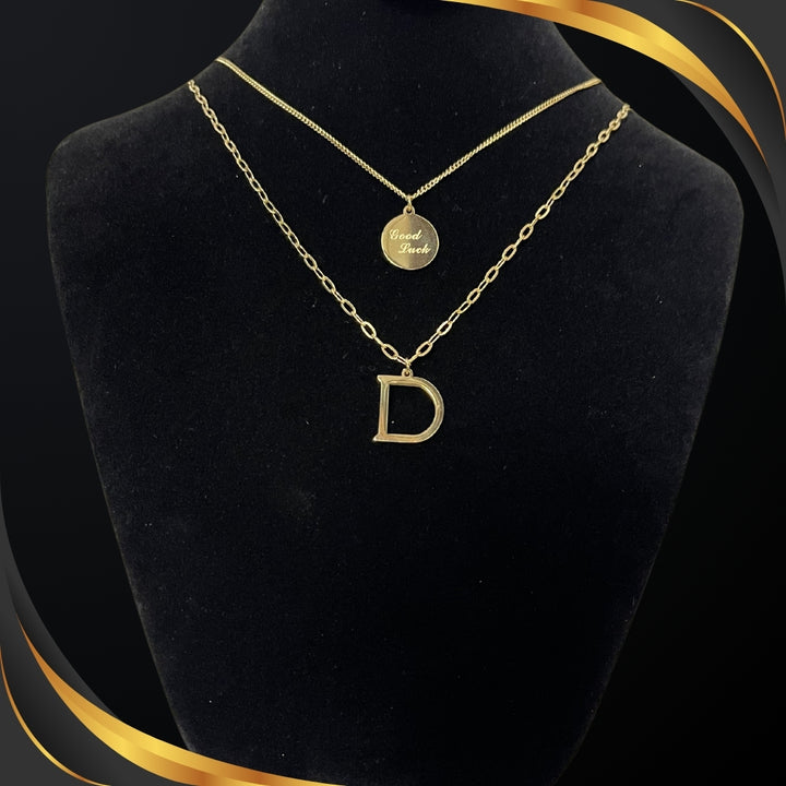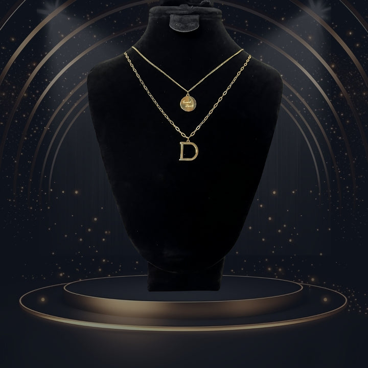 قلادة الحروف الأنيقة هذا هو الإكسسوار المثالي لأي إطلالة. مصنوعة من مواد عالية الجودة، تُضفي هذه القلادة لمسة شخصية مع حرفكِ المختار. ارتديها بمفردها أو مع قلادات أخرى لإطلالة أنيقة وعصرية. أظهري ذوقكِ الشخصي مع هذه القلادة الجميلة.
