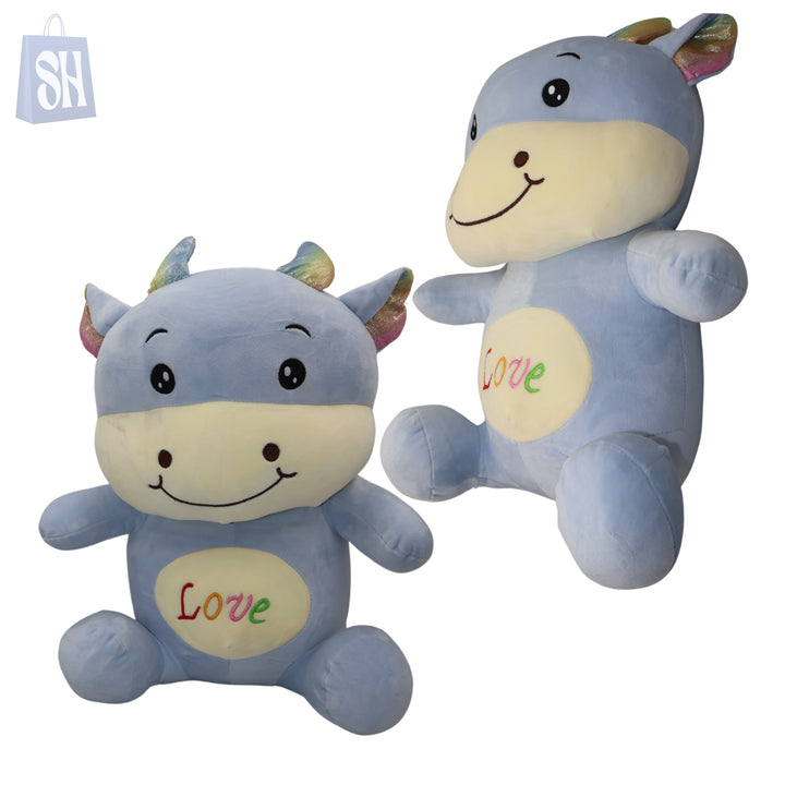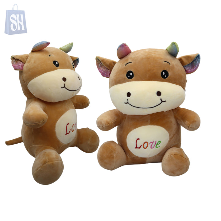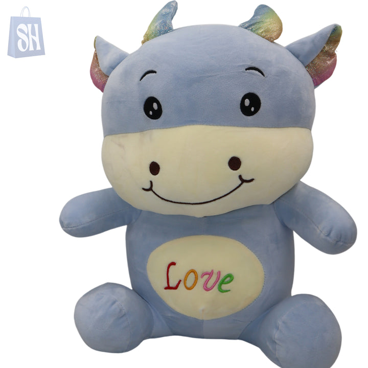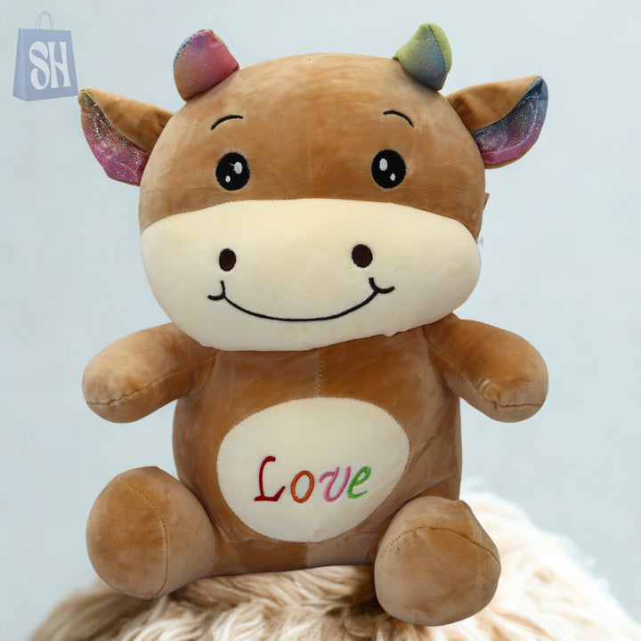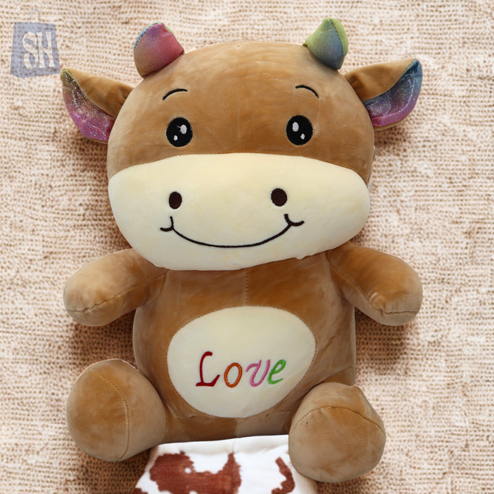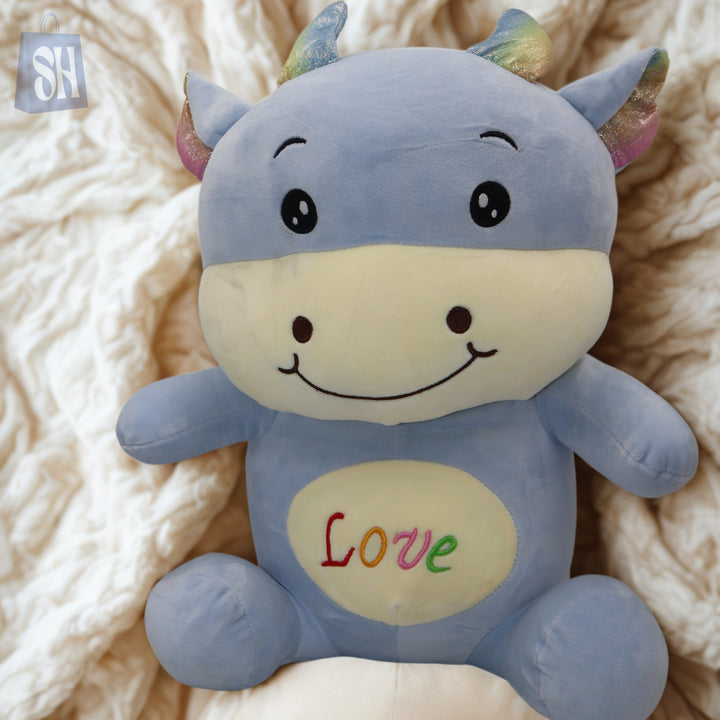 دمية بقرة ناعمة بقرون قوس قزح وتطريز كلمة "Love" بألوان زاهية. 🐮🌈