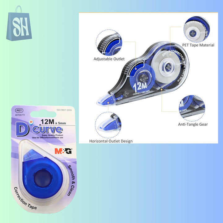 صُمم شريط تصحيح المنحنيات D من M&G لتطبيق سلس ونظيف ودقيق. بطول 12 مترًا وقبضة منحنية مريحة، يُعدّ مثاليًا للطلاب والمحترفين وكل من يُقدّر العمل الأنيق. لا يحتاج إلى وقت تجفيف أو فوضى - انزلق وانطلق!