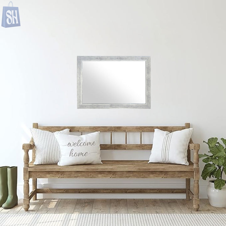 مرآة حائط مستطيلة عصرية بإطار على شكل خشب - 66 × 36.5 سم