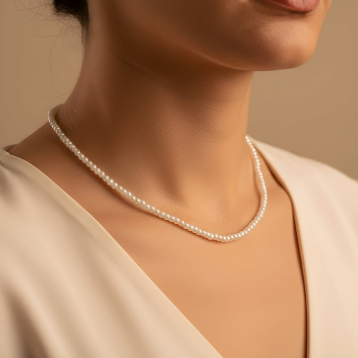 يُضفي هذا العقد الأنيق من اللؤلؤ لمسةً من الرقي والسحر على أي إطلالة. بلآلئه البراقة وتصميمه الرقيق، يُعدّ الإكسسوار المثالي لأي مناسبة. مصنوع من مواد عالية الجودة، ومن المؤكد أنه سيصبح قطعةً أساسيةً في مجموعة مجوهراتك.