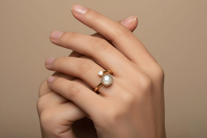 Elevate your jewelry collection with this expertly crafted pearl circle ring. Featuring a timeless circular design adorned with lustrous pearls, it offers a sophisticated blend of classic elegance and modern style. Perfect for both everyday wear and special occasions, this ring adds a refined touch to any outfit while showcasing impeccable craftsmanship.