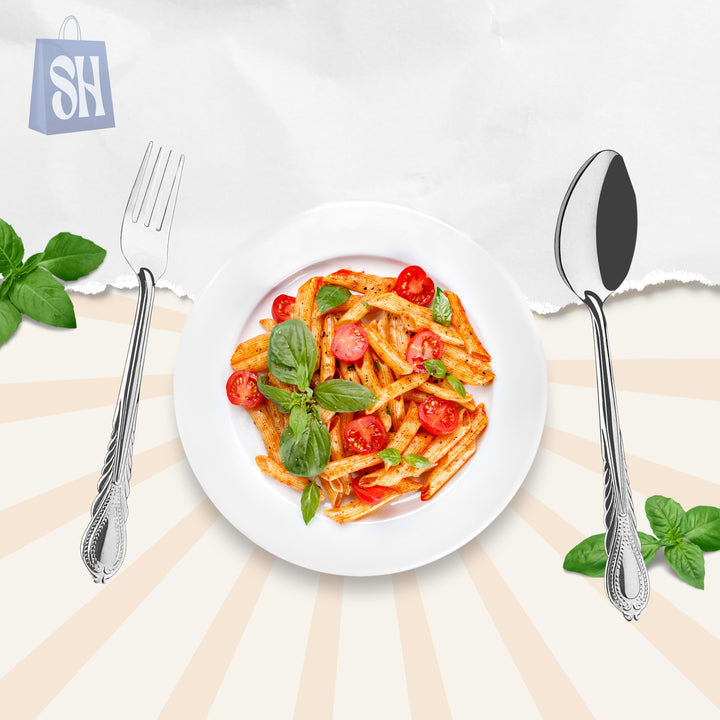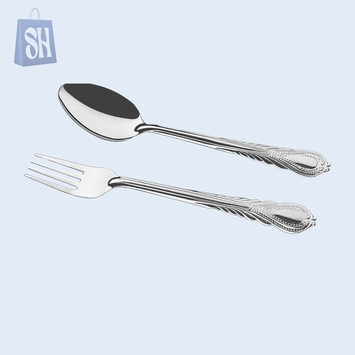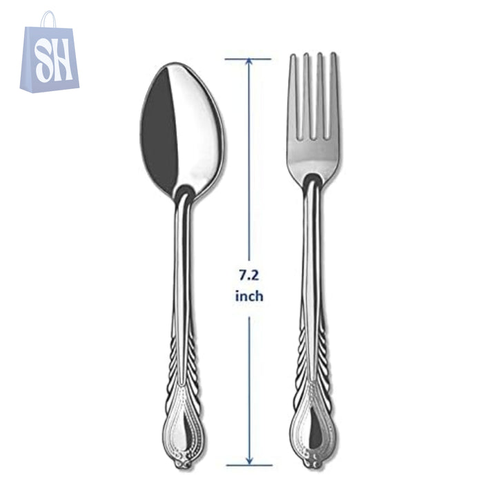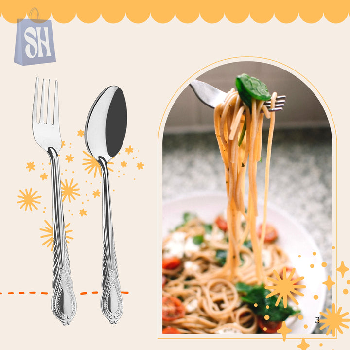 أضف لمسة من الأناقة إلى مائدتك مع هذا الطقم المتكامل من الملاعق والشوك المصنوع من الفولاذ المقاوم للصدأ.