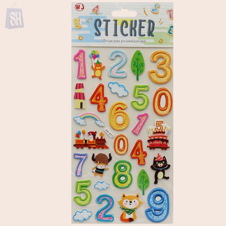 حوّل الأرقام إلى مغامرة مرحة مع ملصقات مغامرات الأرقام المنفوخة! تحتوي كل مجموعة على الأرقام من 0 إلى 9 بتصاميم ثلاثية الأبعاد منفوخة، مصحوبة برسومات حيوانات وشجر وقطار وكعك وغيوم لجعل التعلم والإبداع أكثر متعة. مثالية لـ: