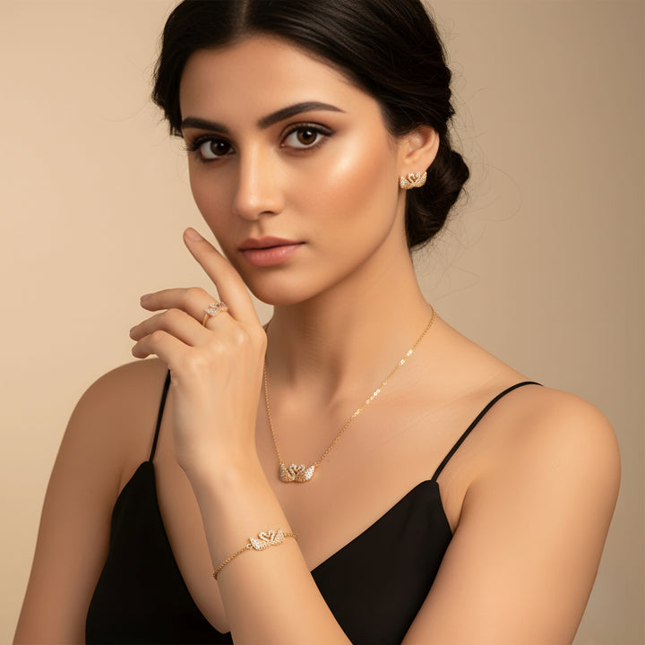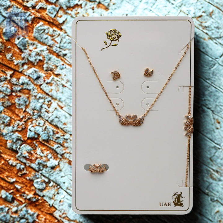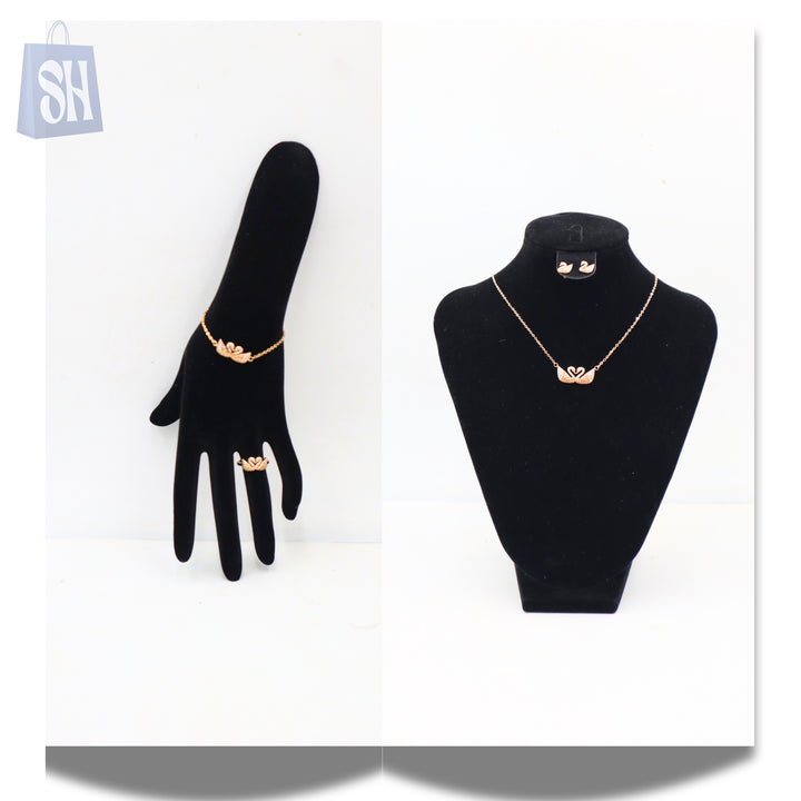 طقم مجوهرات رومانسية على شكل بجعة - قلادة، سوار، خاتم وأقراط