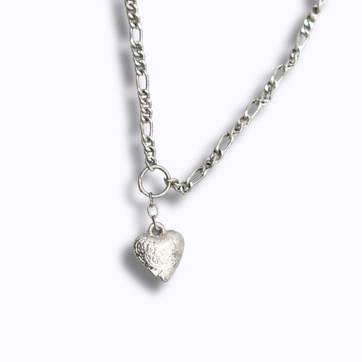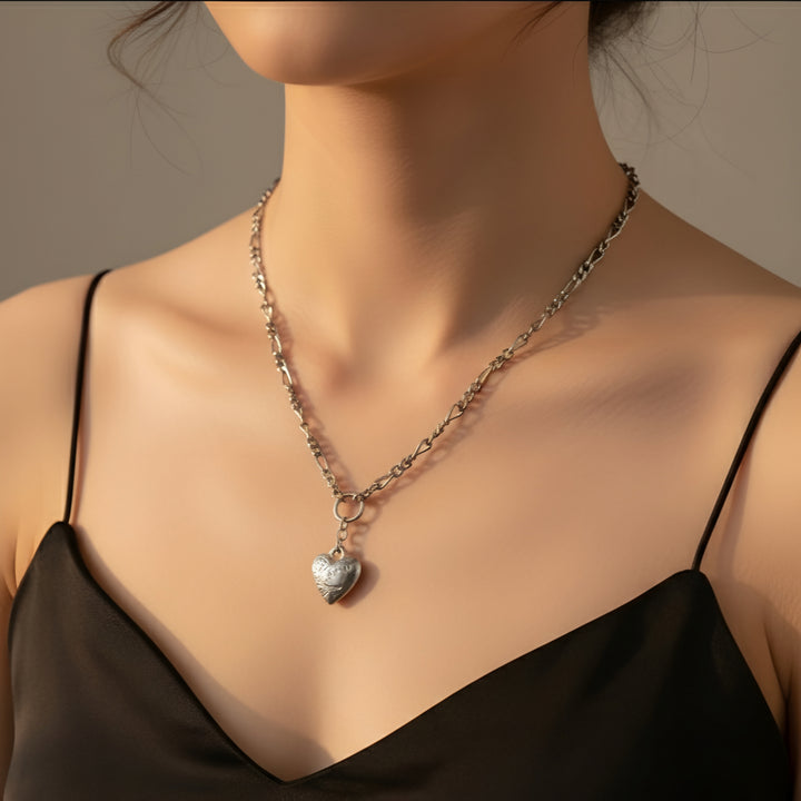 قلادة سلسلة على شكل قلب من الفضة.