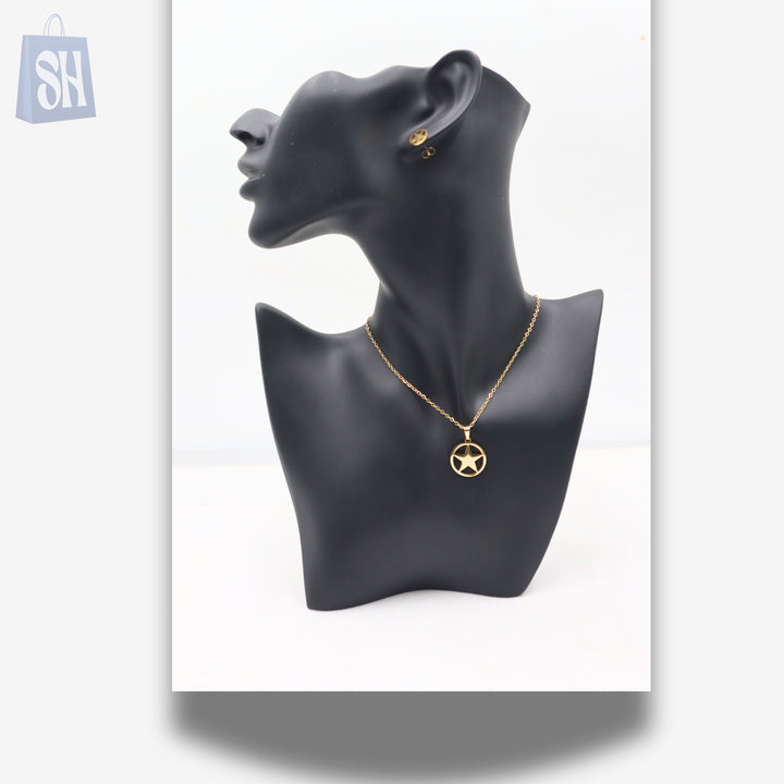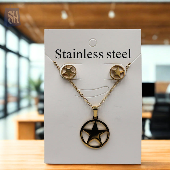 طقم قلادة وأقراط على شكل نجمة من الفولاذ المقاوم للصدأ