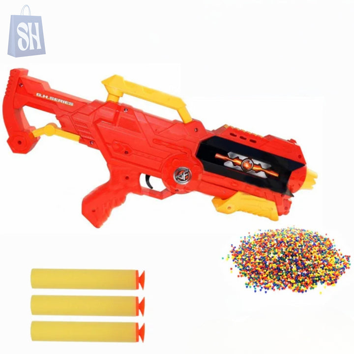 مسدس سهام جل مزود بذخيرة إضافية وعلبة لصنع كرات جل. يتضمن هدفًا للتدريب على الرماية. المسدس متوافق أيضًا مع السهام. أتقن التصويب وأصب هدفك إصابةً ساحقة.