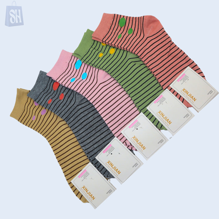 أضف لمسةً من الألوان إلى خزانة ملابسك مع هذه الجوارب القطنية المخططة، المصممة للأناقة والراحة. تتميز بخصائص مضادة للبكتيريا وامتصاص العرق، مما يحافظ على جفاف قدميك وانتعاشها طوال اليوم. مثالية للارتداء الكاجوال أو الرياضي، ستضفي هذه الجوارب لمسةً من البهجة على أي إطلالة.