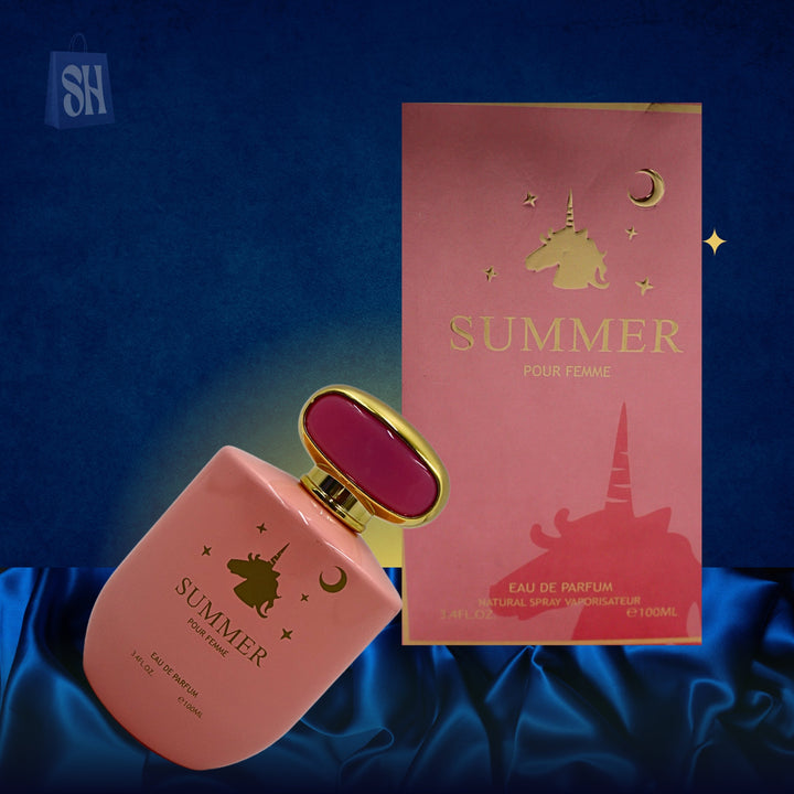 انطلقي في عالم خيالي مع عطر "سمر بور فيم" - عطر يجسّد سحر الليالي الدافئة والأحلام الهادئة. يأتي هذا العطر في زجاجة وردية فاتحة أنيقة مزينة برسم وحيد القرن، ليستحضر الفرح والبراءة والأناقة في آن واحد.