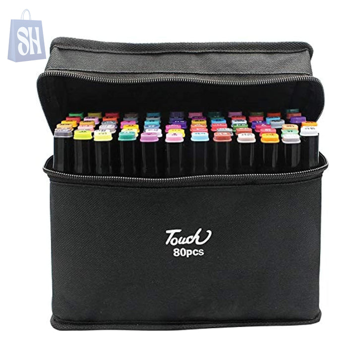 80 لونًا غير سامًا من نوع AB. يجف الحبر المعتمد على الكحول دون الحاجة إلى أي حمض. ممتاز للفنانين والهواة والحرفيين ورسم الأطفال والعمل. لون الجسم: أسود يحتوي الرسم على طرفين...