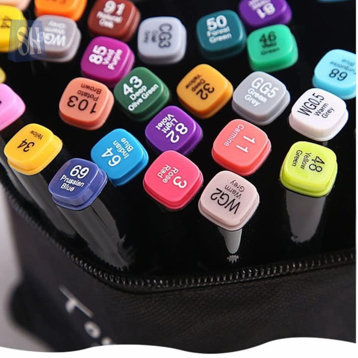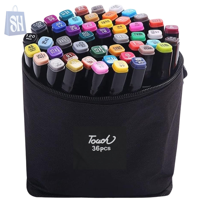 قلم تحديد احترافي مزدوج الطرف من Touch، 38 لونًا - 5 أقلام رسومية تعتمد على الكحول لرسم المانجا مع حقيبة أقلام تحديد مزدوجة الطرف 36 قطعة
