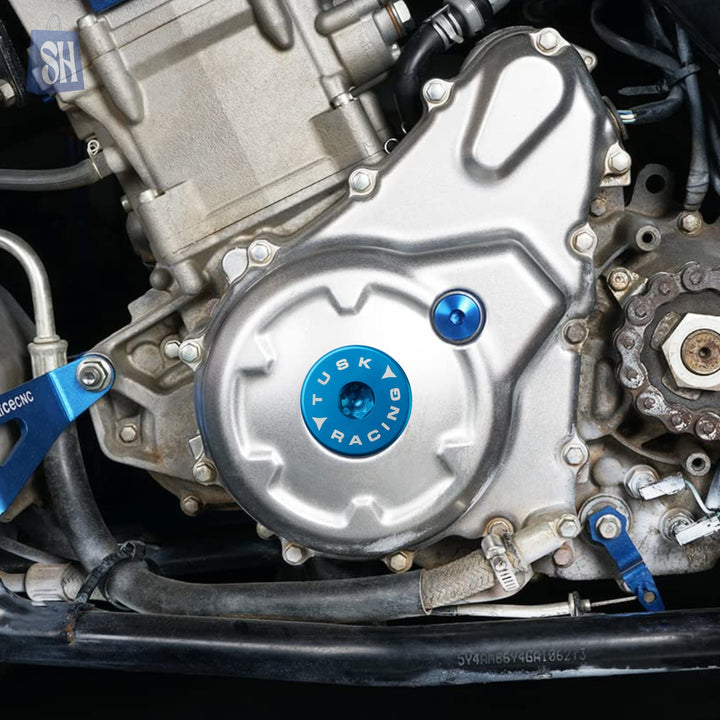 The Tusk Racing Engine Plug Kit is designed for motocross and off-road motorcycles. Made from high-quality, CNC-machined aluminum, these plugs provide a stylish upgrade and a secure seal for your engine. The anodized finish adds corrosion resistance and a custom look, while the engraved "Tusk Racing" logo ensures a race-ready appearance. Easy to install and perfect for riders looking to enhance both function and aesthetics.