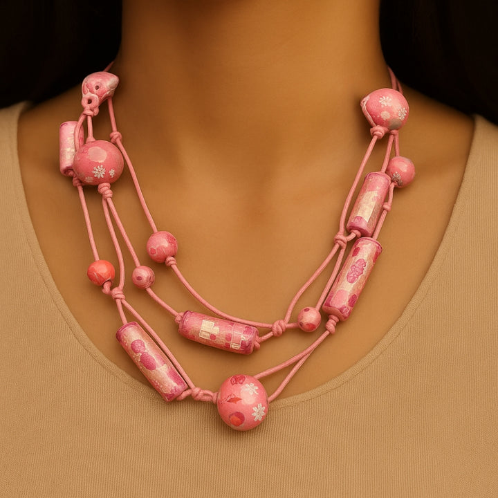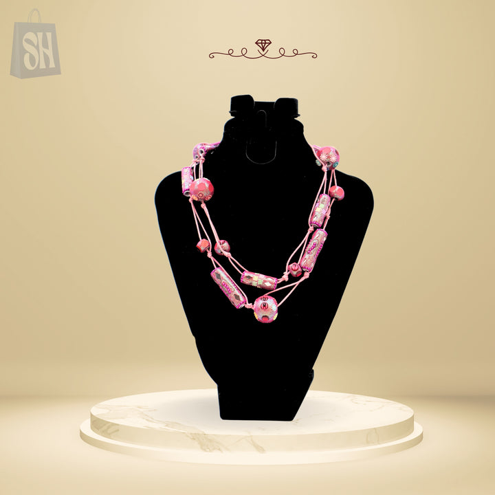 قلادة من الخرز الوردي النابض بالحياة مصنوعة يدويًا - سحر ملون لكل مناسبة