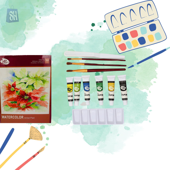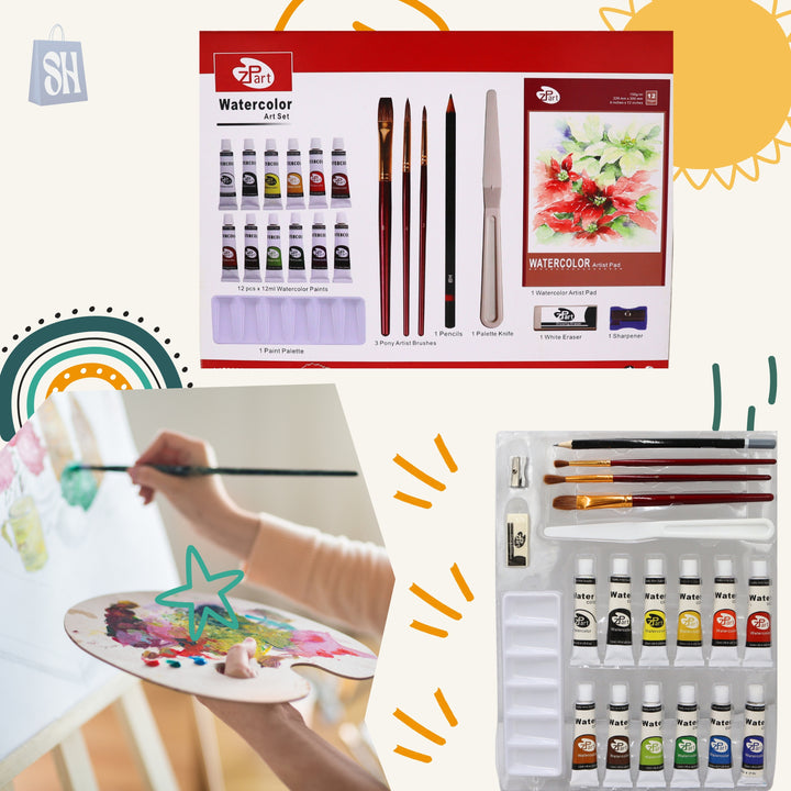 أطلق العنان لإبداعك مع هذه المجموعة الفنية المتكاملة للألوان المائية ، مثالية للمبتدئين والطلاب والفنانين المحترفين. تتضمن هذه المجموعة الشاملة كل ما تحتاجه لبدء رحلتك الفنية، من ألوان مائية عالية الجودة إلى أدوات الرسم الأساسية. سواء كنت تتدرب أو ترسم أو تبتكر روائع فنية، صُممت هذه المجموعة لإلهامك وتحقيق نتائج نابضة بالحياة.