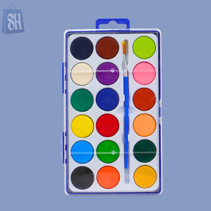 Unleash your creativity with this 18-Color Watercolor Paint Set! Featuring a vibrant palette of high-pigment colors and a convenient brush, this set is perfect for kids, students, and beginner artists. Housed in a sturdy plastic case with a clear lid for easy transport and storage, it’s ideal for school projects, arts & crafts, or creative fun at home. Safe, washable, and mess-free!